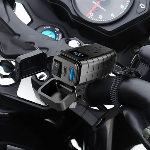 WODOODPORNA ŁADOWARKA USB + USB-C Z SZYBKIE ŁADOWANIE DO MOTOCYKLA/SKUTERA QC 3.0 + WOLTOMIERZ