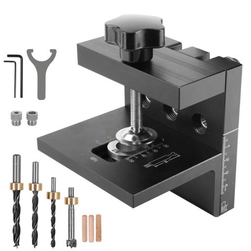 - Zestaw 3 w 1 do otworów kieszeniowych do wiercenia otworów czopowych i otworów pionowych. Wyposażony w tuleje wiertarskie 8 mm, 10 mm i 15 mm oraz wiertła kręte, 3 w 1 wykrywacz wierteł. Kompletny zestaw kombinowany może spełnić Twoje różne potrzeby wiercenia, wykwintny mechaniczny zestaw prowadnic wiertniczych z precyzyjnymi skalami na korpusie, które można regulować w zależności od grubości płyty.