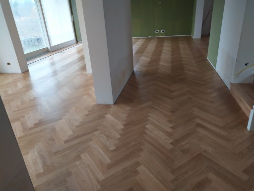 Parkiet dębowy ułożony w jodłę klasyczną w szerokości 10cm daje podłodze ponadczasowy wygląd który sprawdzi się w tradycyjnych i nowoczesnych wnętrzach.