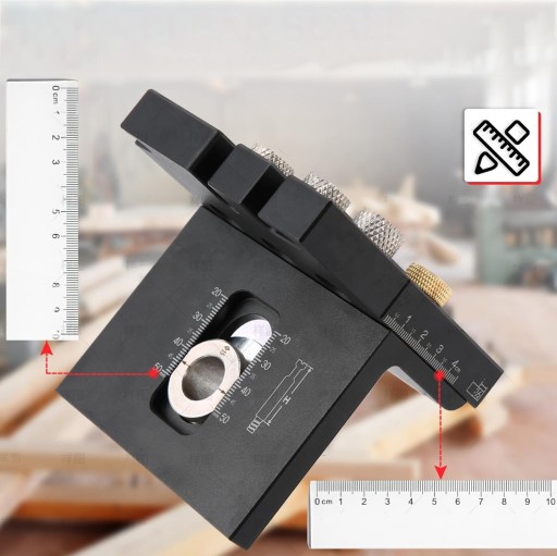 - Skala rozmiaru jest wytrawiona laserowo, trwała i precyzyjna, solidna, precyzyjnie hartowana stalowa konstrukcja bloku środkowego o wyjątkowo wysokiej wytrzymałości i żywotności, specjalnie zaprojektowana do wiercenia i łączenia płyt drewnianych, co czyni ją idealnym narzędziem do mebli panelowych.