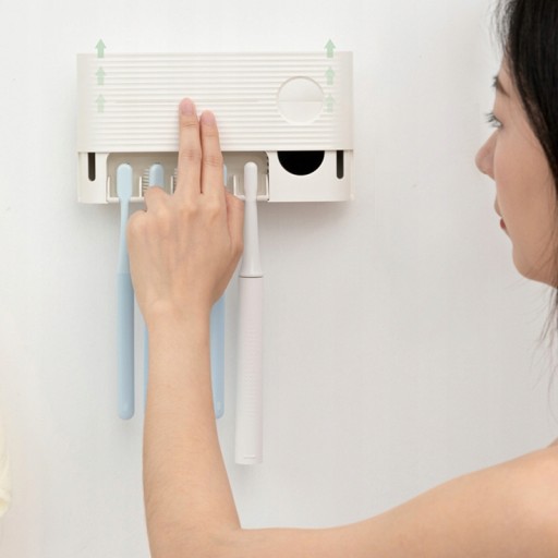 Wbudowany turbo wentylator wyciągowy szybko wydmuchuje kropelki wody na włosach szczoteczki do zębów, Dokładnie osusz krople wody na szczoteczce. Utrzymuj ją w czystości i ograniczaj rozwój bakterii.