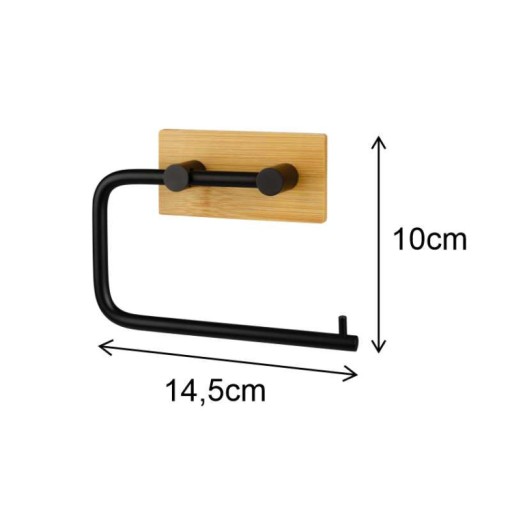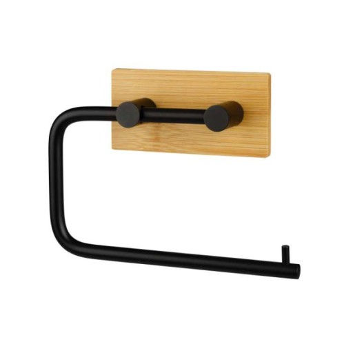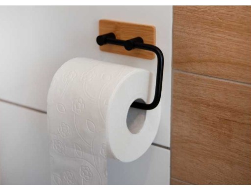 Uchwyt na papier toaletowy posiada minimalistyczny i nowoczesny design, dzięki swojemu delikatnemu wyglądowi. Uchwyt wykonany jest z naturalnego bambusa połączonego z czarnym metalowym uchwytem tworzy atrakcyjny kontrast, który pasuje do wielu stylów dekoracyjnych. Czarne, proste ramię do zawieszania papieru toaletowego z wygodnym sposobem wymiany rolki, dzięki otwartej końcówce. Prosty montaż na ścianie, dzięki użyciu taśmy montażowej