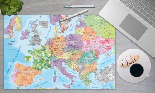 ✔️ Podkładka na biurko z mapą Europy wykonana z 3 warstw o grubości 0,3cm