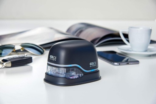 Colop e-mark to elektroniczne, przenośne (zasilane akumulatorowo) urządzenie do znakowania, które pozwala tworzyć i zmieniać własne nadruki, a także drukować je za sprawą łatwej funkcji przesunięcia bocznego. Korzystając z aplikacji na urządzeniu mobilnym lub komputerze stacjonarnym, można tworzyć niemalże nieograniczone ilości wzorów, gotowe do użycia szablony, a także korzystać z funkcji specjalnych.Urządzenie sprawdzi się w różnorodnych zastosowaniach: od codziennych potrzeb biurowych, przez personalizację przesyłek, po tworzenie oznaczeń w sklepie lub magazynie.
