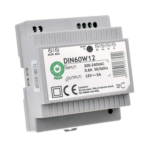 ZASILACZ NA SZYNĘ DIN 60W 12V 5A DO TAŚM LED DOMOFONU POS POWER DIN60W12