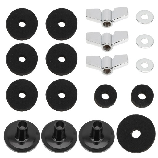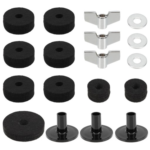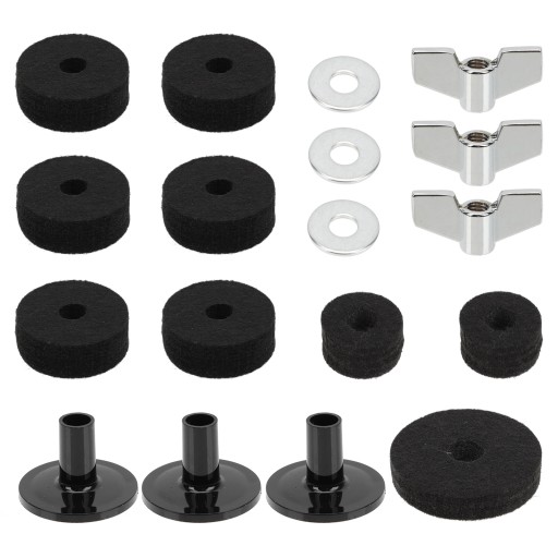 ✅Standardowe podkładki filcowe, tuleje, nakrętki, pasujące do większości zestawów perkusyjnych. Bardzo praktyczne.