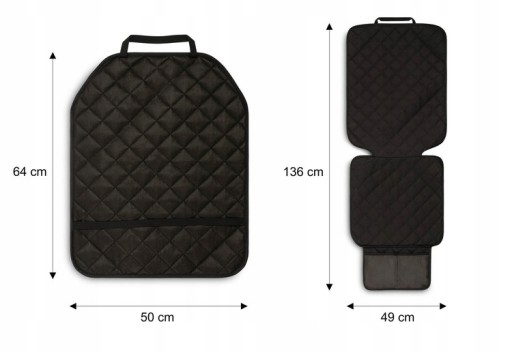 Dostępne w zestawie mata ochronna i ochraniacz na tył fotela skutecznie zabezpieczają tapicerkę przed uszkodzeniami, przetarciami oraz zabrudzeniami. Elementy zestawu wykonane są z wodoodpornego, łatwego w konserwacji materiału. Dzięki uniwersalnym rozmiarom i wszytym gumkom z łatwością dopasują się do większości foteli. Gumowe tasiemki pozwalają na łatwy montaż i są nieodczuwalne przez pasażerów. Produkty wykończone są lamówką.
