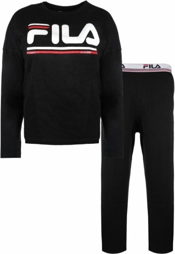 To jest automatyczne tłumaczenie wygenerowane przez software:Wygodna i ciepła piżama z dżerseju. Skład materiału to: 95% bawełna i 5% elastan. Logo FILA na bluzie i spodniach.