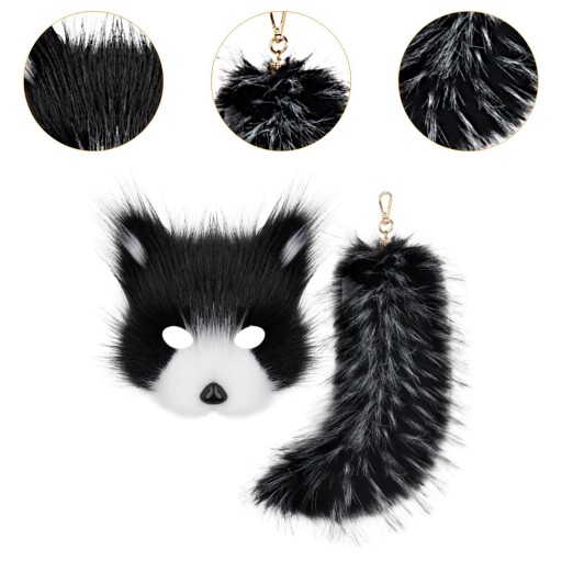 Maska i ogon Therian 10" długi ogon wilka maska dla kobiet dziewcząt futrzana maska czarno-biała