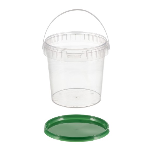 WIADRO OKRĄGŁE 1L BEZBARWNE Z POKRYWKĄ BEZBARWNĄ, BIAŁĄ, CZERWONĄ LUB ZIELONĄ