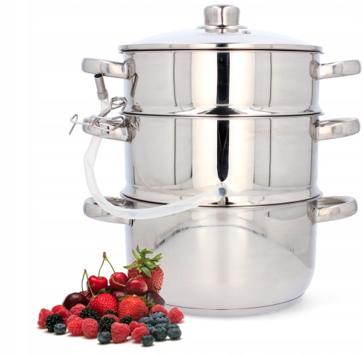 Sokownik został wykonany z wysokiej jakości stali nierdzewnej. Służy do wytwarzania soków z owoców lub warzyw przez poddawanie owoców działaniu gorącej pary wodnej. Pozostałości owoców po uzyskaniu soku, można wykorzystać do zrobienia dżemu.