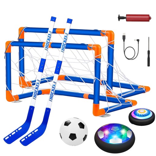 -Ten zestaw zawiera unoszącą się w powietrzu piłkę hokejową, unoszącą się w powietrzu piłkę nożną i nadmuchiwaną piłkę.