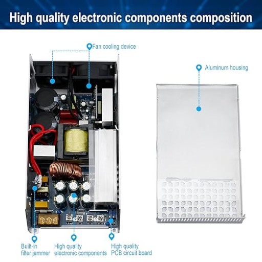 Uniwersalny zasilacz impulsowy AC Zasilacz impulsowy 110V/220V AC; moc wyjściowa 60V 25A 1500W, prąd wyjściowy zależy od wymagań urządzeń pobierających prąd, zapewnia różny prąd/wat dla wielu urządzeń (moc szczytowa nie jest równa maksymalnemu prądowi/mocy obciążenia).
