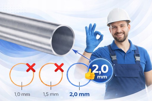 ⚠️ Balustrady z rur o grubości 1,0 mm lub 1,5 mm nie spełniają krajowych norm i często pochodzą od producentów spoza Polski.