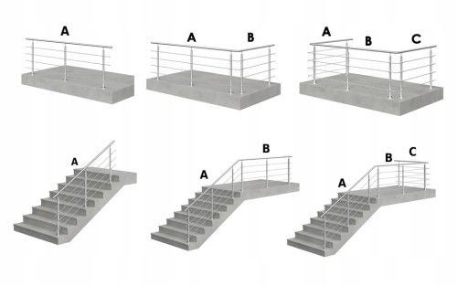 Nasza balustrada posiada możliwość łączenia o kolejne odcinki A + B + C, możesz dowolnie konfigurować długość balustrady, tworząc spójną i estetyczną całość.