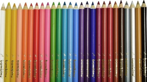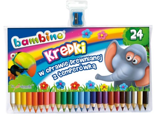 Kredki BAMBINO w oprawie drewnianej z temperówką, 24 kolory
