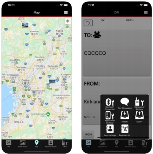 Możemy także połączyć radiotelefon z telefonem komórkowym i za pomocą aplikacji RS-MS1A (dla Androida) lub RS-MS1I (dla iOS) korzystać z wielu zaawansowanych funkcji.