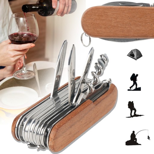 🪛 Łączy wiele funkcji w jednym, w tym pilnik do paznokci, piłę, nóż, nożyczki, śrubokręt, szczypce, otwieracz do butelek, ściągacz izolacji i wiele innych.