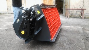 - Kratę zabezpieczającą z zębami do rozpruwania worków przez którą nabieramy piasek/kruszywo/pasze, chroni ona przed dostaniem się do mieszalnika kamieni i innych zanieczyszczeń, które mogą spowodować uszkodzenie bądź zablokowanie wirnika.