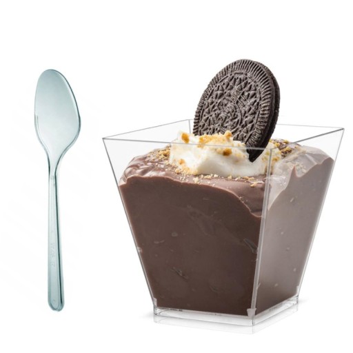Pucharki Kwadratowe do deserów 60ml + łyżeczki 50