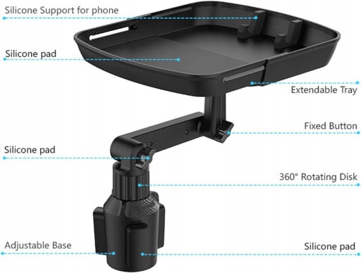 Dua adowno regulowana w zakresie 360 samochodowa taca do jedzenia jest wydajna i wielofunkcyjna i moe pomieci przedmioty takie jak ywno przekski klucze telefony komórkowe szklanki z wod i wiele innych. Kompaktowy i praktyczny uchwyt na napoje jest wystarczajco kompaktowy aby nie zajmowa zbyt duo miejsca w samochodzie. Przyjemno z jedzenia w samochodzie i polepsza przestrzeń do przechowywania w samochodzie. Doskonay prezent regulowana taca samochodowa do jedzenia to wspaniay wybór na prezent na urodziny zakończenie szkoy Boe Narodzenie Wielkanoc Nowy Rok doynki i inne wita dla rodziny i przyjació. Ulepszona konstrukcja póka na napoje jest wyposaona w rami obrotowe 360 dziki któremu mona j ustawi do idealnej pozycji. Jest rozcigliwy a zakres rozcigliwoci wynosi 153202 cm. atwy monta póka na napoje jest atwa w instalacji stabilna i trwaa. Rozmiar uchwytu na napoje wynosi 558 cm. Prosz wybra odpowiedni rozmiar.