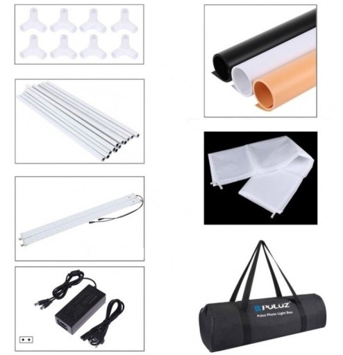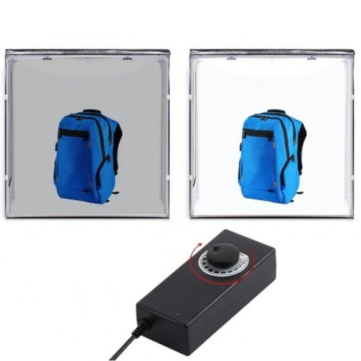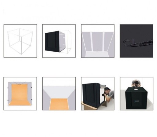 Profesjonalna, składana, przenośna kabina do fotografii bezcieniowej, wyposażona w oświetlenie LED. Light box, dzięki składanej konstrukcji opartej na stabilnym stelażu i niewielkim rozmiarom, jest bardzo mobilny. Nadaje się do wykonywania zdjęć niewielkich przedmiotów bez cienia rzucanego przez te przedmioty, oraz uzyskania idealnie białego tła wymaganego przez wiele internetowych serwisów sprzedażowych.