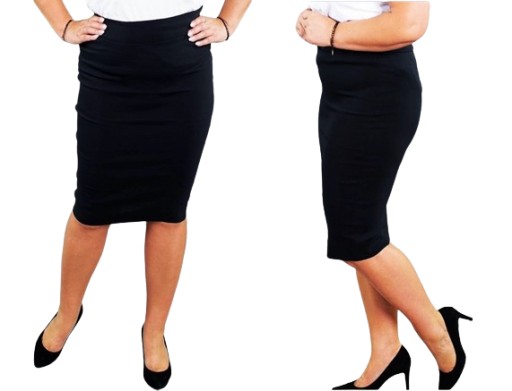 MODNA OŁÓWKOWA CZARNA SPÓDNICA ELASTYCZNA TUBA DOPASOWANA MIDI XL/42