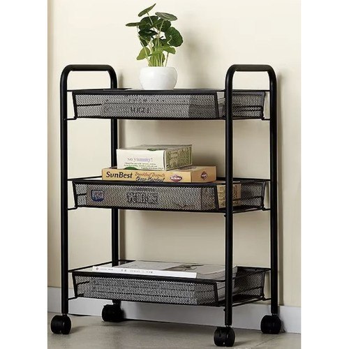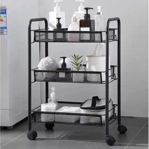 - WYTRZYMAŁA KONSTRUKCJA Z WYSOKIEJ JAKOŚCI ŻELAZA - regał mobilny wykonany jest z trwałego i solidnego żelaza, malowanego proszkowo na elegancki, czarny kolor. Żelazo gwarantuje odporność na korozję i uszkodzenia, co sprawia, że regał jest trwały i idealnie nadaje się do codziennego użytku w różnych warunkach, zarówno w kuchni, łazience, jak i w biurze. Malowanie proszkowe dodatkowo chroni powierzchnię, nadając jej estetyczny, matowy wygląd.