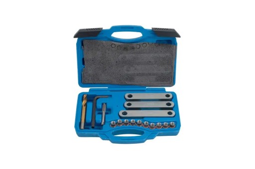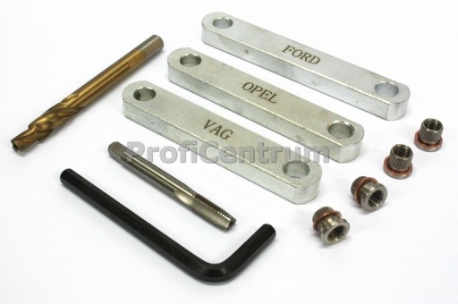Opis produktu: Zestaw do naprawy uszkodzonych gwintów mocujących prowadnice zacisku hamulcowego: VW AUDI , OPEL, FORD Zestaw w walizce do przechowywania.