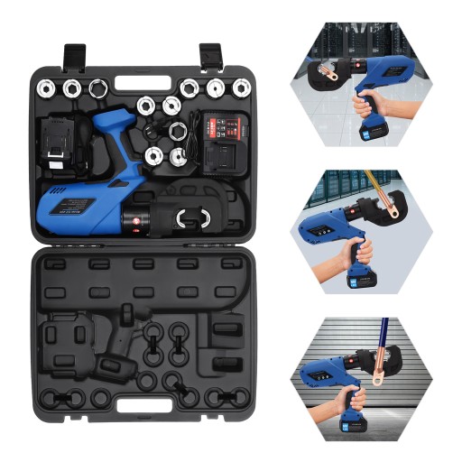 Te bezprzewodowe, szczypce do zaciskania są wykonane z wysokiej jakości materiałów, dzięki czemu są dostarczane i dostarczane. Posiada zaciskania 120 KN, 12 adapterów i akumulatorów o dużej pojemności, dzięki czemu zaciskanie jest szybsze i wydajniejsze. Dodatkowy ergonomiczny uchwyt jest wygodny w trzymaniu i można go łatwo umieścić w jednym ręku. Nasze produkty z możliwością rozwiązania do rozwiązania zaciskania!