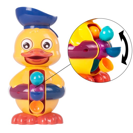 W między czasie, gdy woda będzie się przelewać oczka kaczuszki będą kręcić się w kółko. Zabawka zdecydowanie rozbawi tym każdego maluszka.