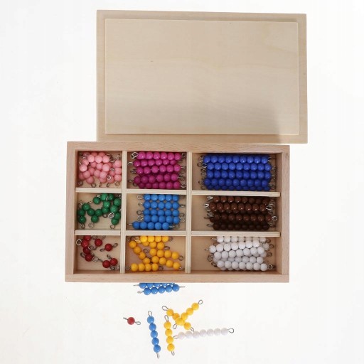 Drewniane pudełko z kolorowymi koralikami i zestawem tablic z numerami dla zabawki edukacyjnej dla dzieci