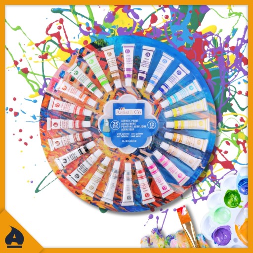 - Zestaw zawiera 24 tubki farb akrylowych po 12 ml każda.