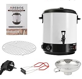 Wysokiej jakości ekspresowi do grzanego wina o mocy 2500 W firmy AREBOS z wbudowanym osłodziszem poręcz roku. Profesjonalny dystrybutor gorącej wody zapewnia podgrzewanie i wygodne przygotowanie gorących napojów, takich jak herbata, kawa czy grzane wino i grzane piwo. Urządzenie nadaje się do użytku gastronomicznego jak i prywatnego .