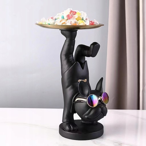 Buldog francuski z tacą idealnie nadaje nowoczesność oraz odświeża design domu.