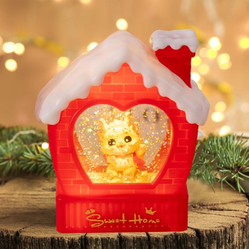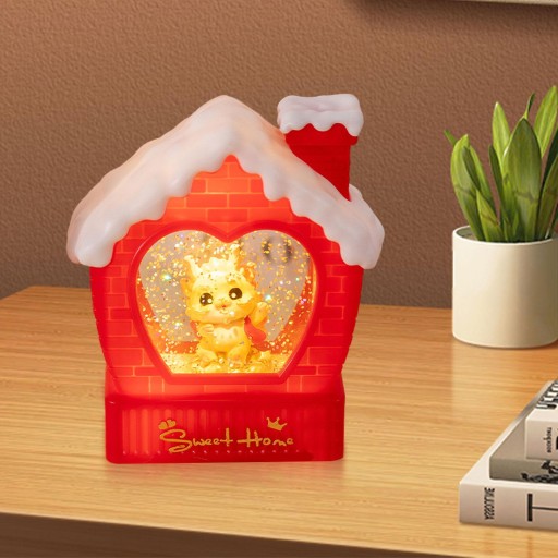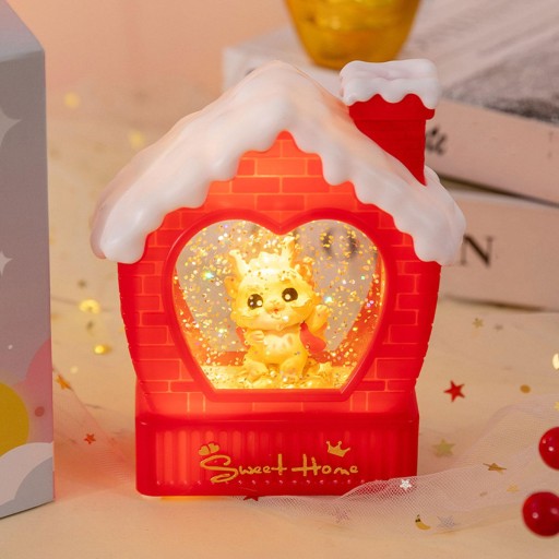 [Dekoracja noworoczna]: latarnia ze śnieżną kulą z uroczą lalką smoka to dodatek do dekoracji noworocznej.