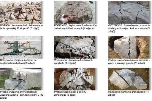 - rozsadzania, rozrywania, rozłupywania, wyburzania i kruszenia betonu, głazów, kamienia, żelbetu i skał,