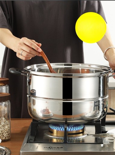 ✅ Garnek ma trzywarstwową konstrukcję, dzięki czemu możesz gotować i gotować na parze więcej jedzenia.