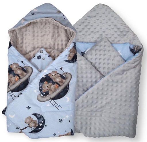 ✅ Praktyczność - W podróży kocyk do fotelika, w domu może służyć jako rożek/becik do otulania niemowlęcia czy mata do zabawy.