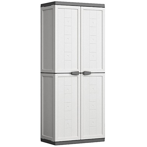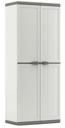 Do produkcji wielofunkcyjnej szafy Jolly wykorzystano najwyższej jakości tworzywo sztuczne, dzieki czemu jest bardzo wytrzymała. Wnętrze wielofunkcyjnej szafy dzieli się na dwie przegrody, z czego jedna wyposażona została w trzy regulowane półki. Każda z nich jest w stanie pomieścić do 10 kg wszelkiego rodzaju artykułów codziennego użytku. Regulowane na kilku poziomach półki umożliwiają dostosowanie konstrukcji do indywidualnych potrzeb, co znacznie zwiększa komfort użytkowania mebla. Jedną z wielu zalet prezentowanego modelu są ergonomiczne, podwójne uchwyty zapewniające wygodny i pewny chwyt, które można dodatkowo zabezpieczyć kłódką.