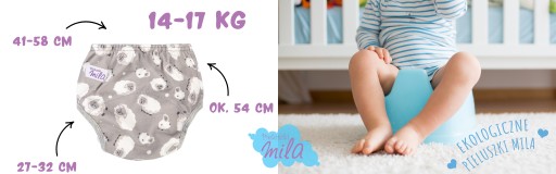 Majteczki treningowe nie stanowią zamiennika pieluszek wielorazowych, nie mają tak dużej chłonności! Jeśli nastąpi zamoczenie, produkt może przeciekać. Dla zwiększenia chłonności można używać dodatkowych wkładów bawełnianych lub tetry, ale dla lepszego efektu „odpieluchowania” nie zalecamy!
