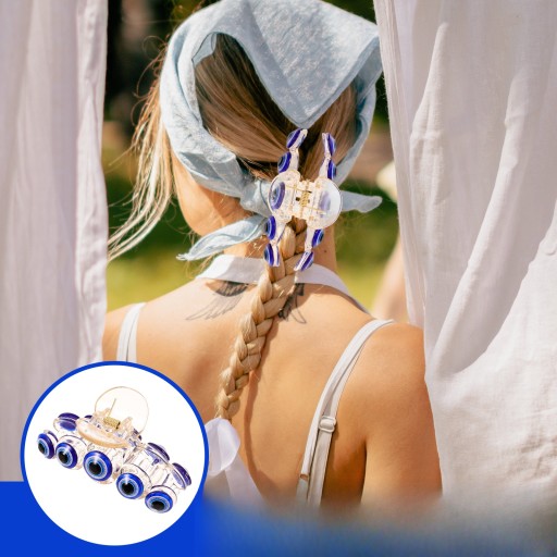 ✅Spinka do włosów dla kobiet wygląda wyjątkowo i szykownie, z niebieskim zdobieniem w kształcie złych oczu, mocno trzyma włosy, nie spadają i nie niszczą się.