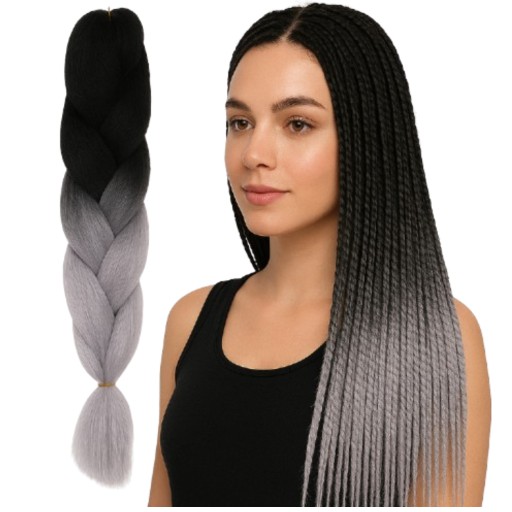 Włosy Syntetyczne Na Warkoczyki Dredy Proste Ombre Pasma Szaro Czarne Modne