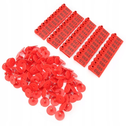 100 SZT. ETYKIETA NA UCHO KOLCZYK DO UCHA Kolor czerwony