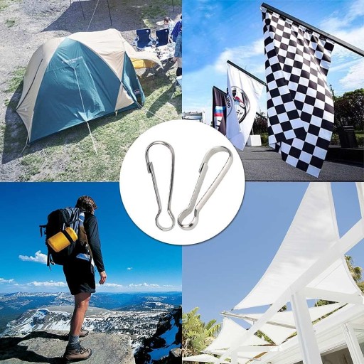 ① 100 szt. haczyki na maszt flaga 3,2 mm karabińczyk metalowe haki do smyczy, haczyki ze stali nierdzewnej flaga akcesoria maszt flaga mocowanie do masztu do mocowania flag, breloków, bielizny itp.