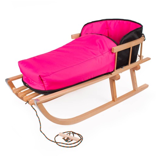 Sanki wykonane są z wytrzymałego drewna bukowego, pokrytego bezbarwnym, ekologicznym lakierem. W tej ofercie otrzymują Państwo zestaw, który zawiera miękką wkładkę oraz śpiworek do sanek, zapewniający izolację od chłodnego wiatru oraz podnoszący komfort jazdy. Dzięki drewnianemu uchwytowi do ciągnięcia i sznurkowi, sanki idealnie sprawdzą się podczas spacerów