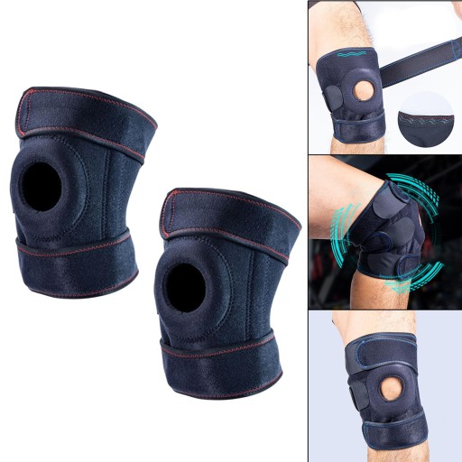 1 para Orteza kompresyjna kolana Sport Regulowana opaska na kolano Czarny czerwony