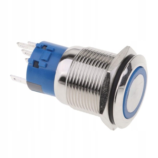 Podświetlany LED 19mm Chwilowy Metalowy Przełącznik Wciskany IP67 Niebieski