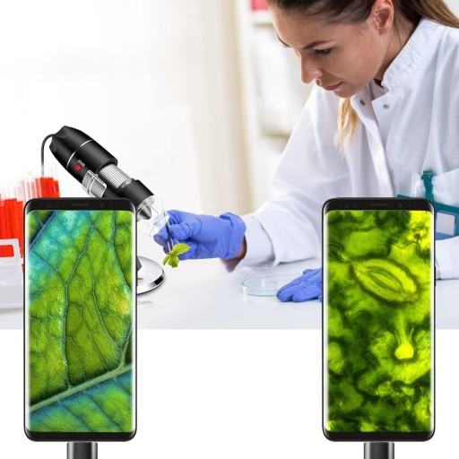 lupa 1000 x USB, jest wyposażony w 8 diod LED, oświetlenie obszaru kontroli można regulować za pomocą pokrętła jasności. Uchwyć zrzut ekranu i nagrywanie wideo z mikroświata, zapewnia to wyraźny i stabilny obraz podczas użytkowania.
