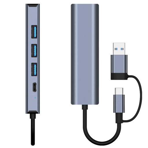 [Adapter USB na Ethernet]: Adapter USB 3.0 typu C na Ethernet, wyposażony w port Gigabit, 3 porty USB 3.0 i 1 port USB do podłączenia wielu urządzeń peryferyjnych USB.
